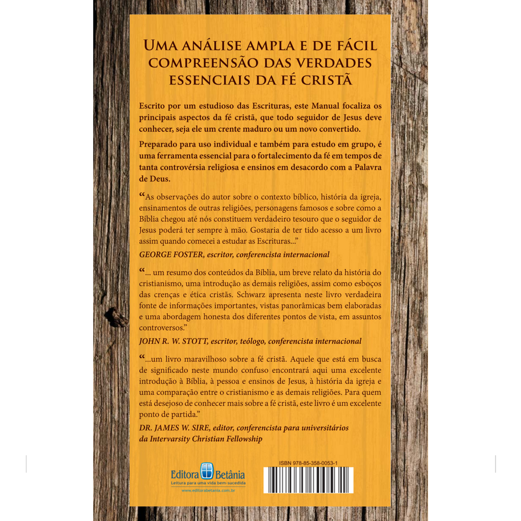 "Um resumo dos conteúdos da Bíblia, um breve relato da história do cristianismo, uma introdução as demais religiões, assim como esboços das crenças e ética cristãs. Schwarz apresenta neste livro verdaeira fonte de informações importantes, vistas panorâmicas bem elaboradas e uma abordagem honesta dos diferentes pontos de vista, em assuntos controversos." (JOHN STOTT, escritor, teólogo, conferencista internacional)