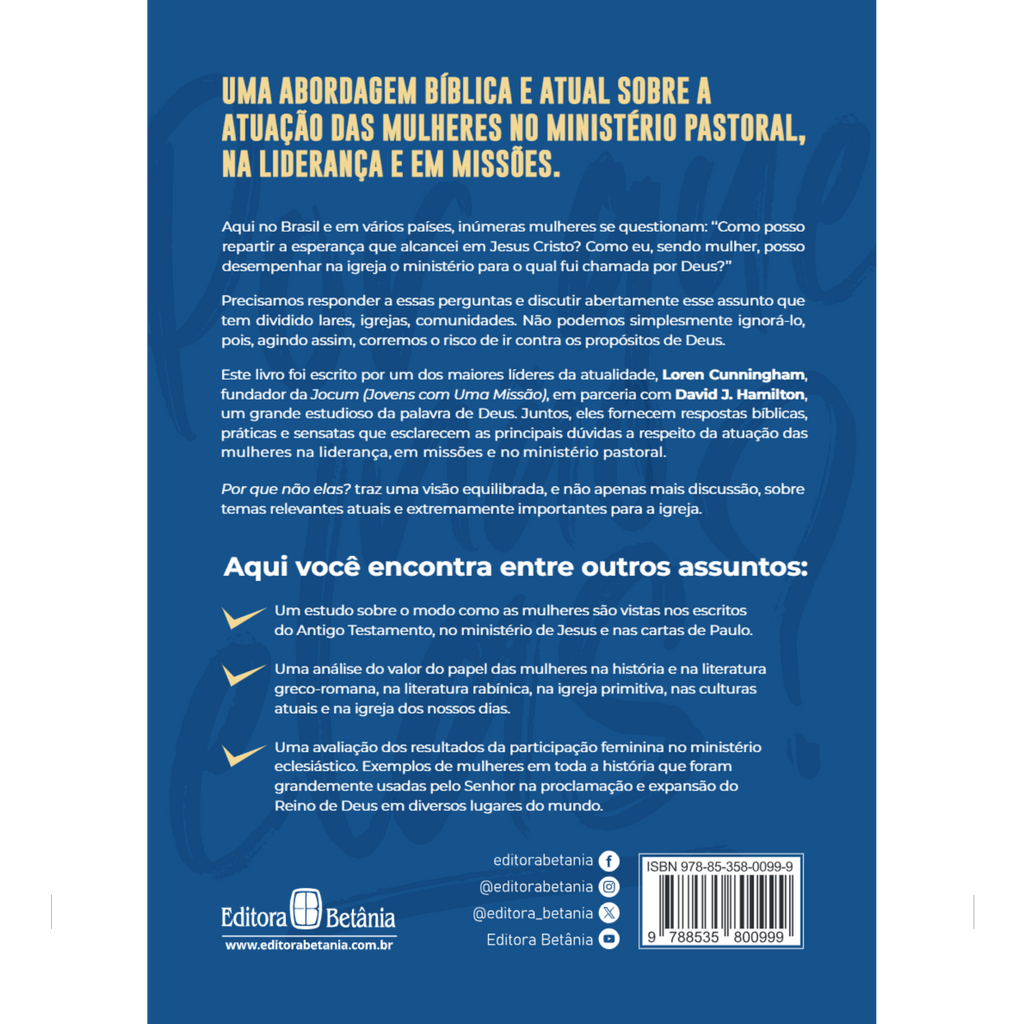 "Por Que Não Elas?" traz uma visão equilibrada e não apenas mais discussão sobre temas relevantes, atuais e extremamente importantes para a igreja.