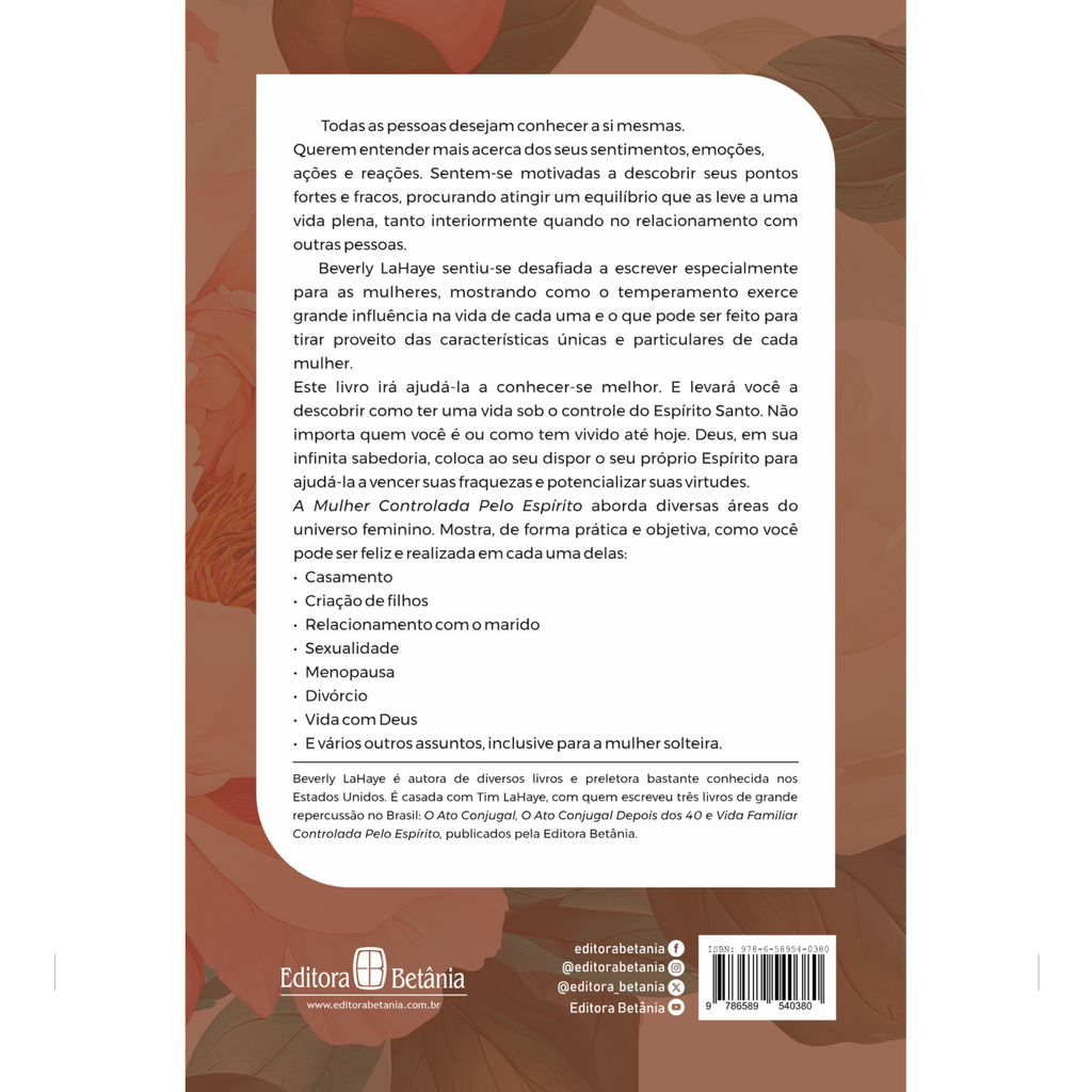 A Mulher Controlada Pelo Espírito aborda diversas áreas do universo feminino. Mostra, de forma prática e objetiva, como você pode ser feliz e realizado em cada uma delas: