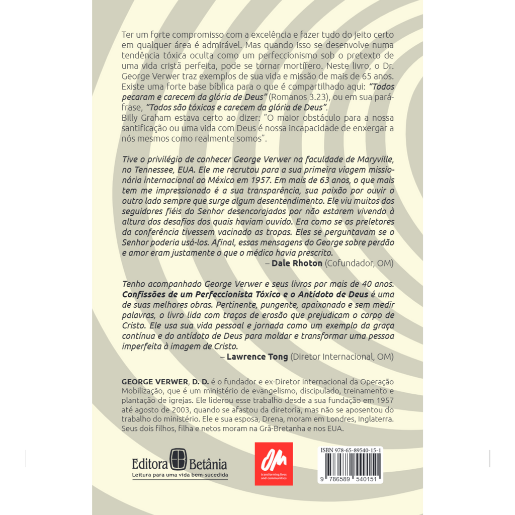 Ter um forte compromisso com a excelência e fazer tudo do jeito certo em qualquer área é admirável. Mas quando isso se desenvolve numa tendência tóxica oculta como um perfeccionismo sob o pretexto de uma vida cristã perfeita, pode se tornar mortífero. Neste livro, o Dr. George Verwer traz exemplos de sua vida e missão de mais de 65 anos.