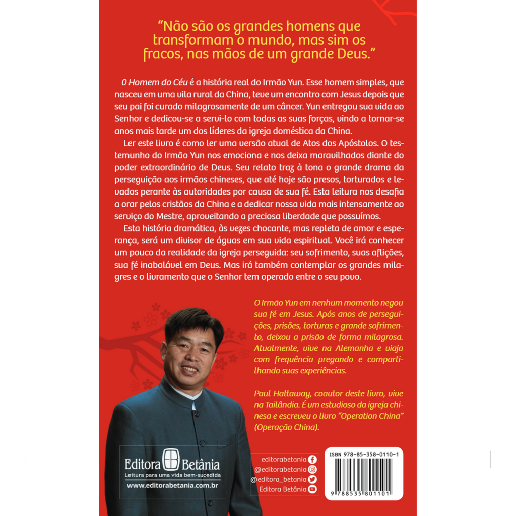 Ler este livro é como ler uma versão atual de Atos dos Apóstolos. O testemunho do Irmão Yun nos emociona e nos deixa maravilhados diante do poder extraordinário de Deus. Seu relato traz à tona o grande drama da perseguição aos irmãos chineses, que até hoje são presos, torturados e levados perante às autoridades por causa de sua fé. Esta leitura nos desafia a orar pelos cristãos da China e a dedicar nossa vida mais intensamente ao serviço do Mestre, aproveitando a preciosa liberdade que possuímos.