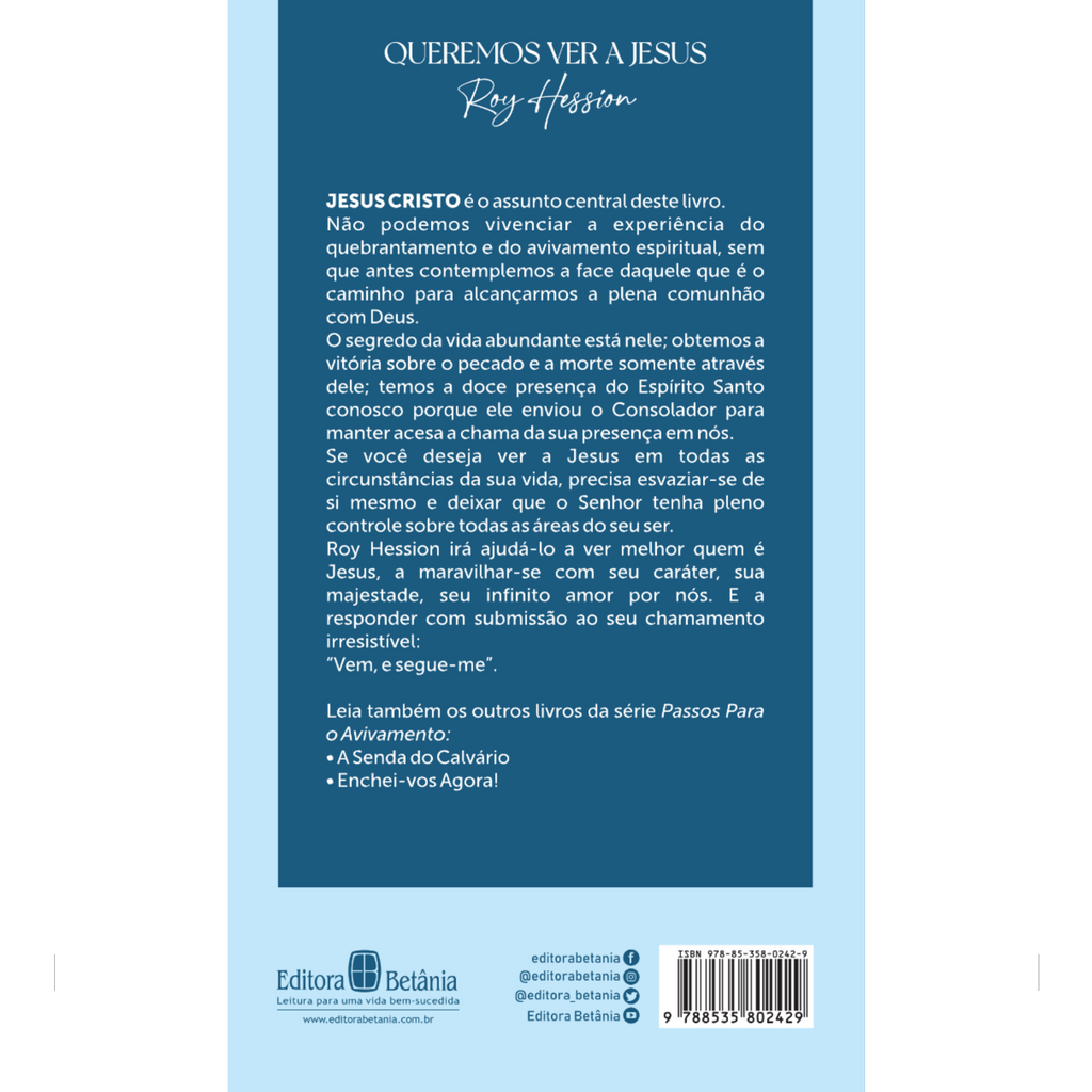 Roy Hession irá ajudá-lo a ver melhor quem é Jesus, a maravilhar-se com seu caráter, sua majestade, seu infinito amor por nós. E a responder com submissão ao seu chamamento irresistível: "Vem, e segue-me".